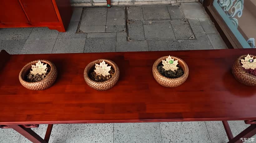 大部分泡池都是不同的药浴泡池,边上还有个中药材展示柜和药茶自取区。