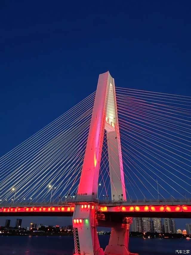 我们首先来到江边。傍晚的江边,像是被大自然打翻了颜料盒,美得如梦如幻。夕阳的余晖给江面镀上一层金边,波光闪烁。小孩眼尖,一下子看到江面上缓缓行驶的大船,兴奋得大喊大叫,脸上满是纯真的喜悦,拉着我们的手又蹦又跳。不远处的大桥上,五彩灯光不断变幻,赤橙黄绿青蓝紫,交织成一片绚丽的光幕,与江景相互辉映,仿佛一幅流动的画卷。老婆站在一旁,脸上洋溢着幸福的笑容,静静地享受着这一刻的美好。