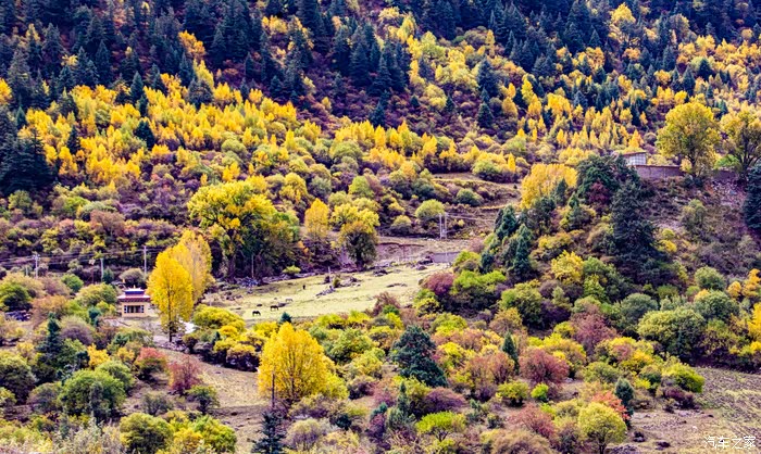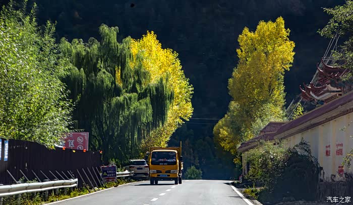 新龙县的大盖镇一带的秋色正隆,令人心旷神怡,是那天经过河谷时,秋色最好的地段。快进入大盖镇,路边设有新龙县的防疫卡点。中午1点过经过那里,顺道做了入州以来的第三次核酸。