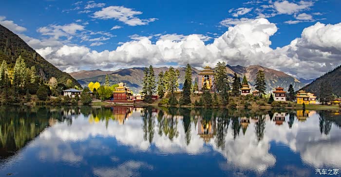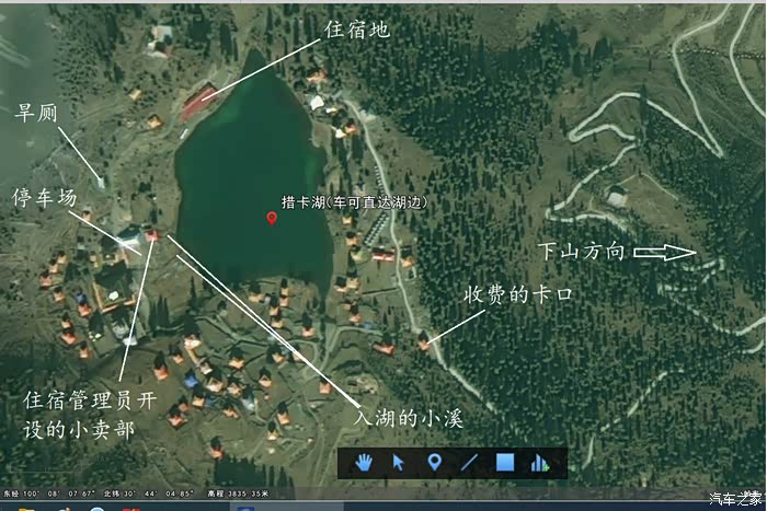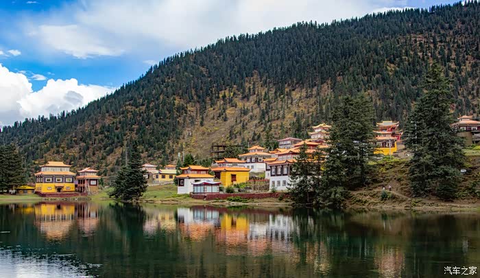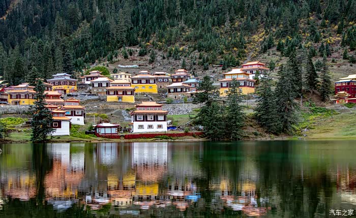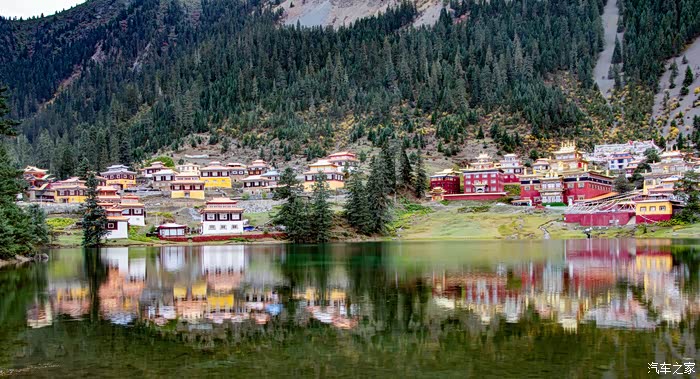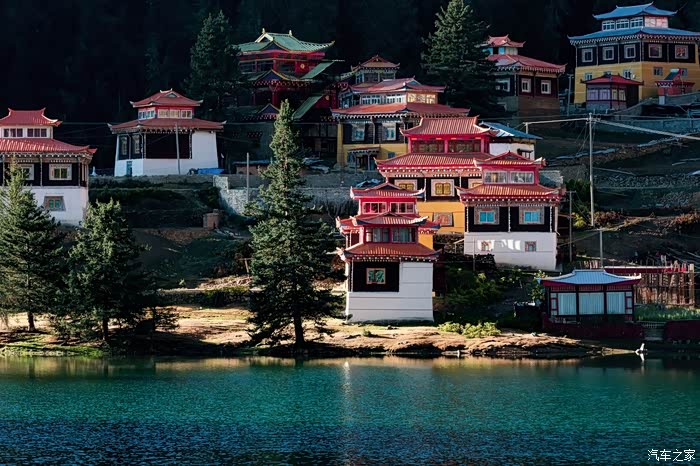 措卡湖面南北长300m,东西宽200m,湖面看起来比网上的照片(兴许多半是广角镜拍摄的,显得宽阔)更袖珍,但是湖边的建筑色彩分明,与湖面搭配起来,还是显得异常美观。到达措卡湖口边,有一个简陋的收费站,每人收取20元的清洁费,里面再没有收费的地方,包括停车。
