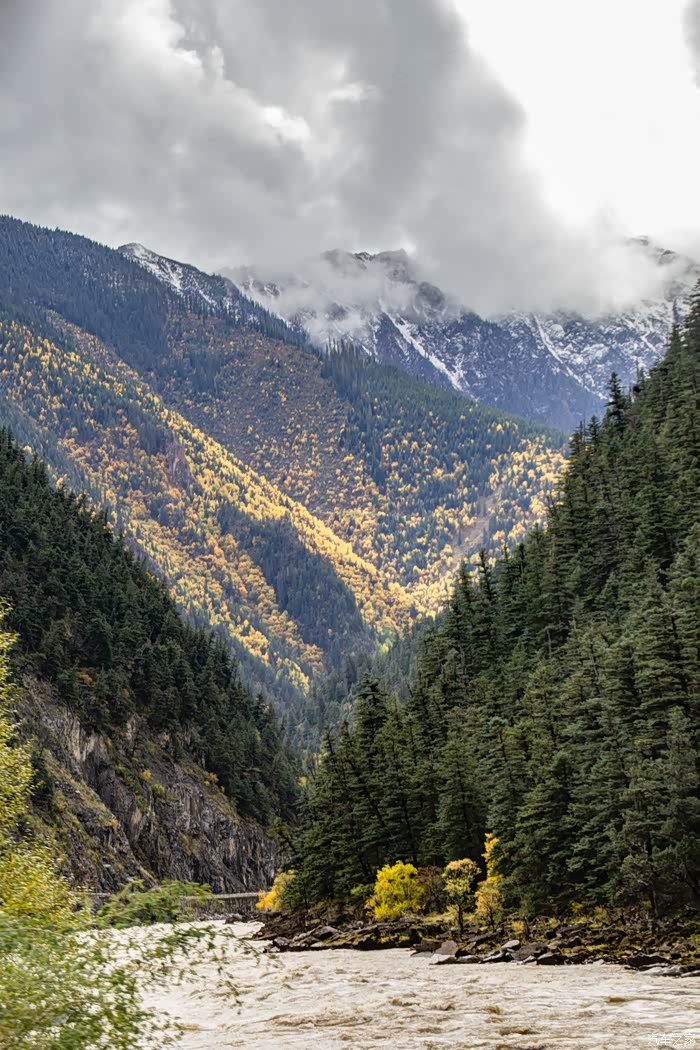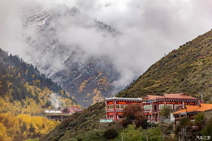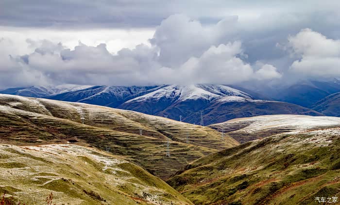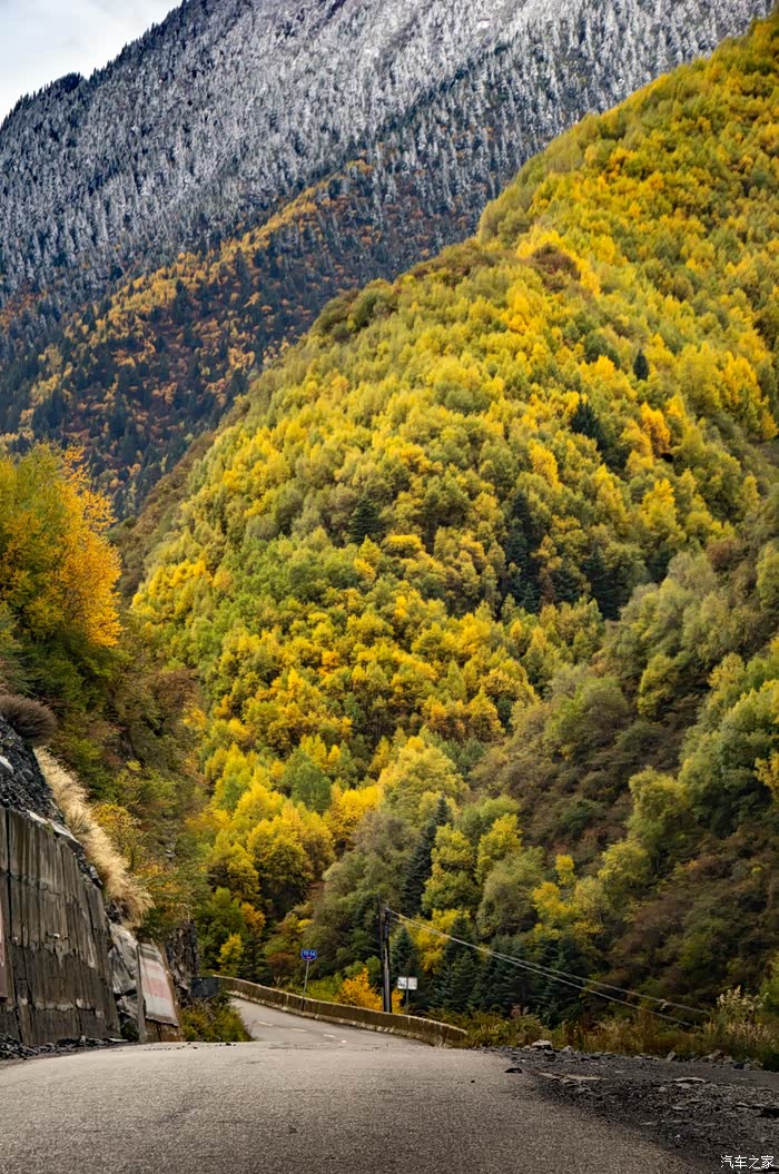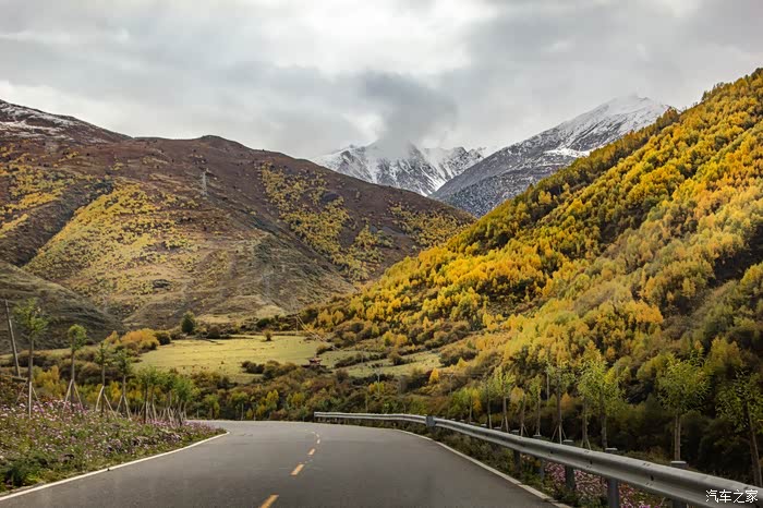 回到G227,继续顺着雅砻江往下游方向前行35km,就离开了河谷,开始上山走向理塘。上山时看见前方黑压压的云层,有点担心山上下雪,实际上过虑了,一路上只是下了点下雨和小雪,完全没有影响行车。