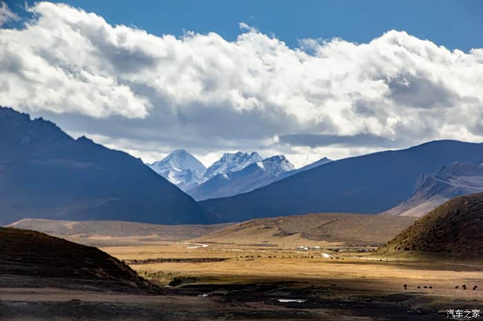 上山以后,地貌就从河谷地区进入了风格完全不同的高山草甸地区,高山牧场也就进入了眼帘。天气也晴好起来,为沿途的牧场增色不少。