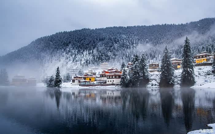 今天安排的时间充裕,特意开车从卡萨湖的西岸进到西北角溜了一圈。湖边上,立着“禁止投食喂鱼”的牌子,但当地的村民却在出售鱼食。游人自然会到湖边尽兴喂鱼。那场景,跟公园内喂食金鱼差不多,抢食的鱼儿重重叠叠,实在是太多太多了。应该是昨晚下过一场雪,湖边的山上披上了银装,云层也较低,给湖边增添了一份神秘的意境。