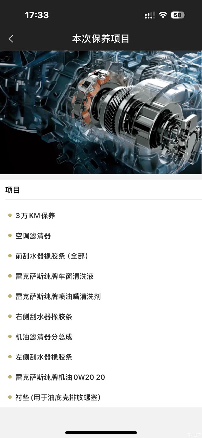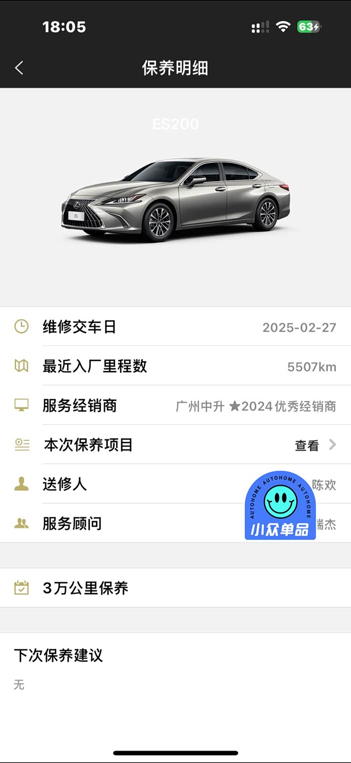 我的这个车子是24年1月多提的,到现在也有15个多月了,这也是我的第三次保养了,雷克萨斯es纯油车型都是有4年或10万公里的免费保修保养的,哪个先到哪个为准,所以你就算没有开到10万公里,4年时间到了,车子这个保养照样就没有用了,所以我一般都是按照时间去的,4.8个月去一次,当然这个保养是全国通用的,你去哪个店保养都是可以的,我到现在为止也就开了6000公里左右,但是保养我也是保养了三次了。但是由于开得公里数也不是特别多,所以保养也都是基本的项目。