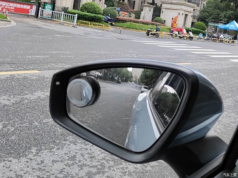 小圆镜角度调节到正好可以看到后轮的位置,这样在倒车的时候我们就可以清晰的看到后轮的运动轨迹,这样可以很好的避免轮胎蹭到马路牙子而损坏!
