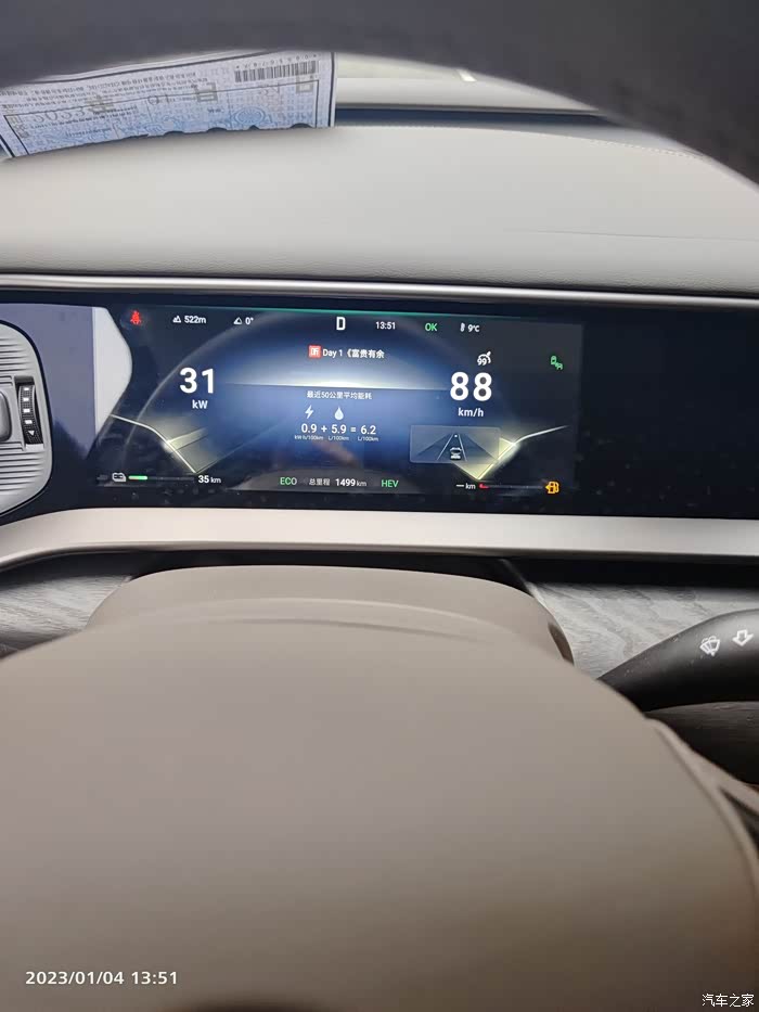 腾势D9的油箱,也是用的比较小,只有52升……