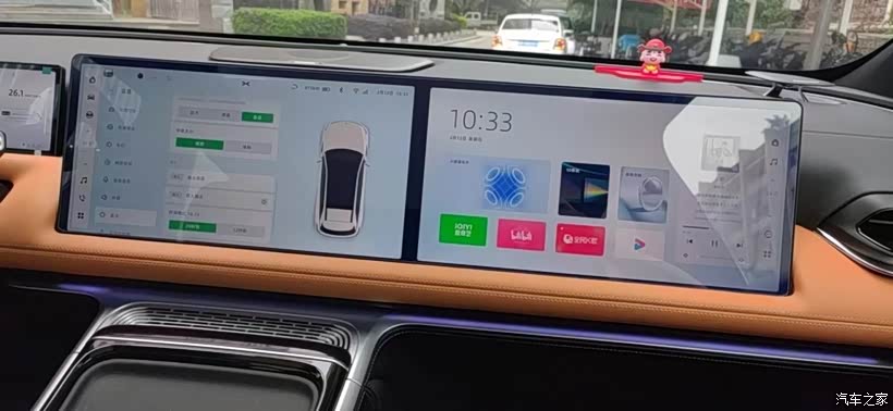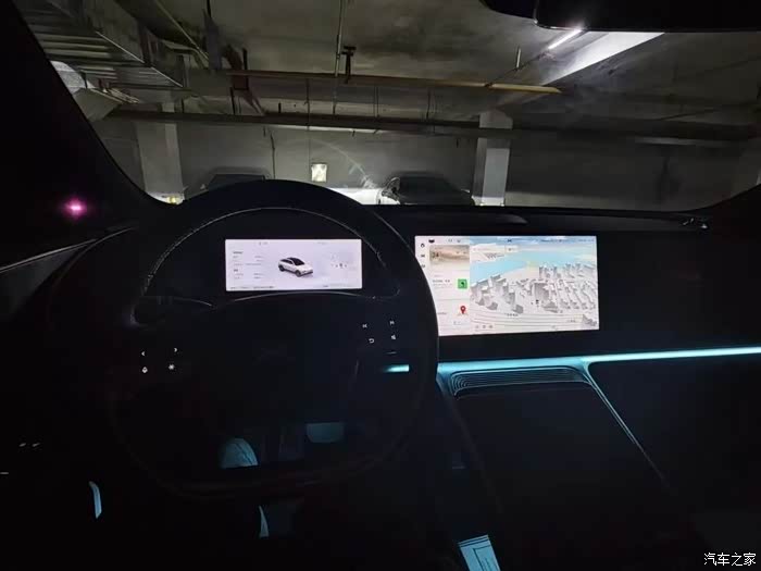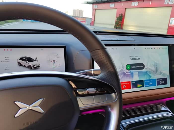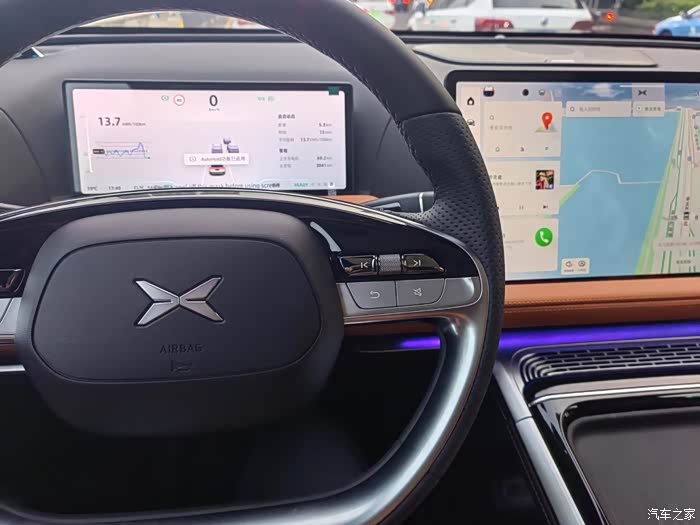 内饰采用了简洁的设计,大多功能都可以直接通过小P实现,而且除了高清中控屏外还配备了一块相同尺寸的娱乐屏,方便坐在副驾的用户看视频或者玩游戏,同时也不影响主驾操控。
