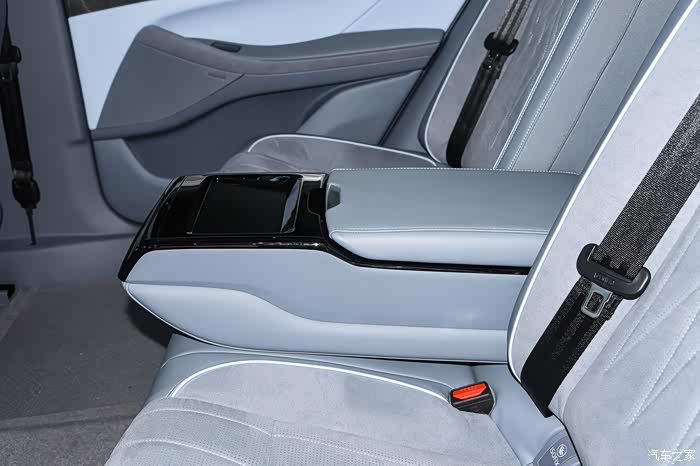 比如后排中控扶手这个操控屏,按理来讲应该是给尊贵的乘客或者老板用的,但是这块屏稍微多看一眼,就感觉跟路边100块钱的触摸屏没差,而且触控手感也不好。