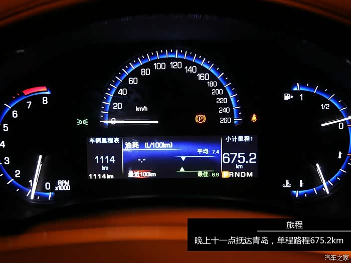 ▼约23:00抵达青岛,单程675公里,一箱油没用完,最佳油耗低至:6.9L/100KM