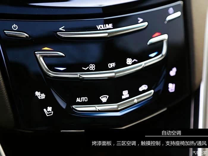 ▼后排独立空调,可以独立操作,也可以通过CUE设置与前排同步,座椅加热按键容易被孩子碰到而误操作,如果有一个锁键,锁上以后再触摸是不起作用的,需要控制,可以先按解锁,再调节各按键