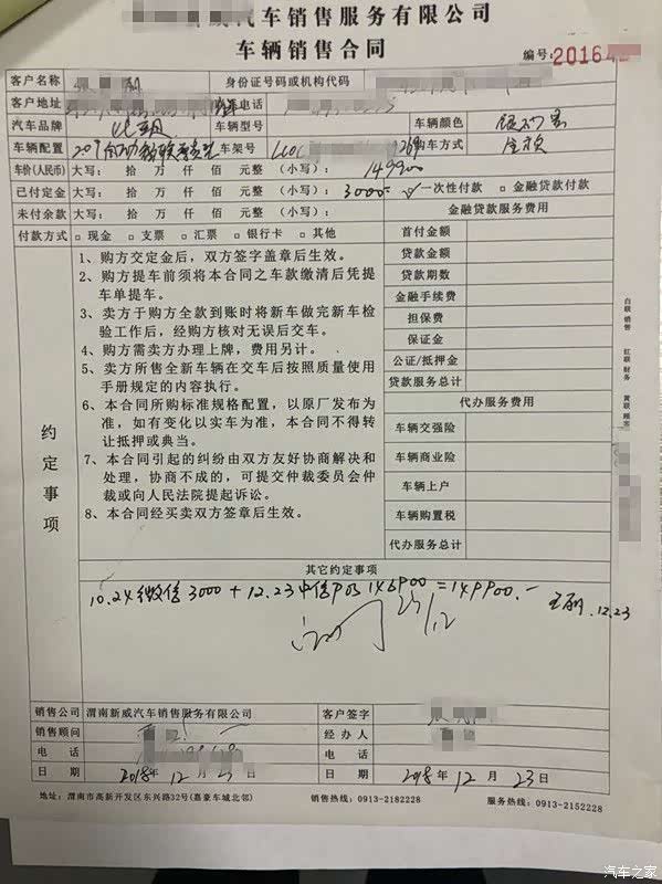 终于在12月8日,我看到小崔的朋友圈发了年底促销的信息,刚好当天休息,征得老婆同意后,带着老婆直奔4S试驾,顺便评估了一下我的S6价格。一切就是这么水到渠成,置换评估协议签完后直接订车。等到保险生效,手续完成后。12月23号当天接到小崔的电话,可以提车了。内心的激动别提了,虽然没有买第一辆车时那么夸张,但还是一分钟都不能等了。上着班的时候给领导请假两小时去提车。来到4S的时候,小崔已经把所有该准备的东西准备好了,经过店内祁总对车辆的详细交接和介绍,又做了一个交车仪式后,大黑唐终于属于我了。当天又出现了一个特殊状况。既丢人又感动。临出发时小崔特意交代出门先加油,油箱里的油坚持不了多远。可我心里总有侥幸心理,心想回到新区再加油,没想到刚下高速,车就在高速出口的盘旋路上熄火抛锚了。过来过去的司机都会放慢车速对我的车行注目礼,我想过从同事车子的油箱里抽油,无法实现,又想找摩托车抽油加油。望着200米远的加油站就是干着急。和加油站沟通想用桶装油救援,没成想怎么说加油站都不同意。后来过了两个小时后实在没有办法,只能腆着脸给小崔打电话请求救援。半个多小时后,祁总和小崔开车过来了,为我的车加了一些油,终于可以启动去加油站了。听说这件事还害得小崔被领导批评没有给车主讲清情况。在此给小崔说声抱歉。希望她能够看到。通过这件事告诉我任何时候都不能有侥幸心理。