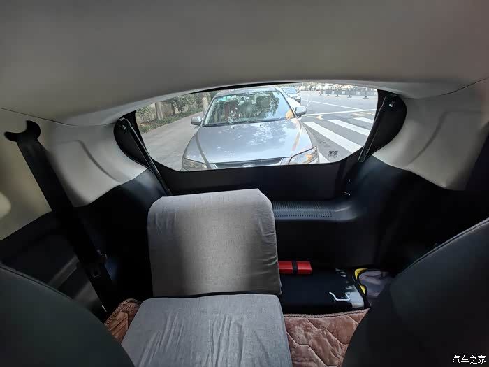 6、拆掉后座,座椅改向后躺平。其实改的时候就大概试了一下,由于拆掉全部座椅,科莱威也不是纯平,后面会高不少,所以终究不能完全平躺,而且如果向前折叠座椅,增加高度后,基本躺不直,睡个午觉都难受的,所以还是向后躺,双脚基本能舒服的伸直,搭配两个靠垫垫屁股,躺起来还是挺舒服的。