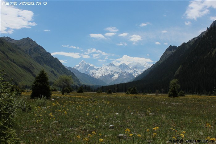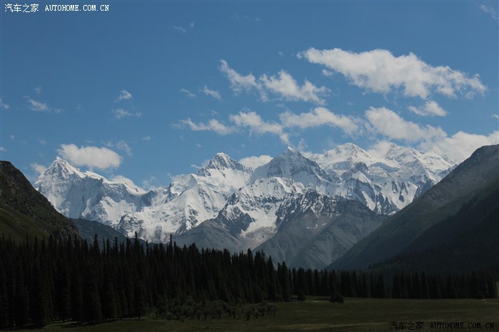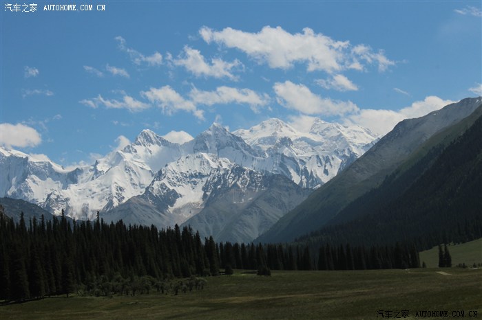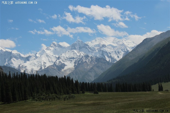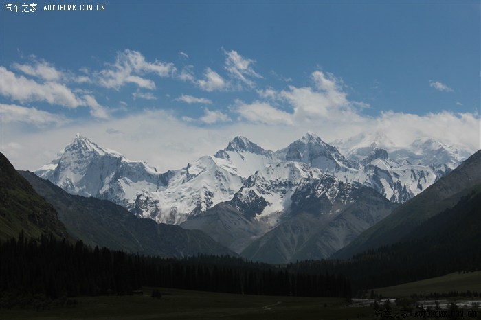 从昭苏往夏特的路上,一眼就能看到延绵的雪山,气势磅礴~