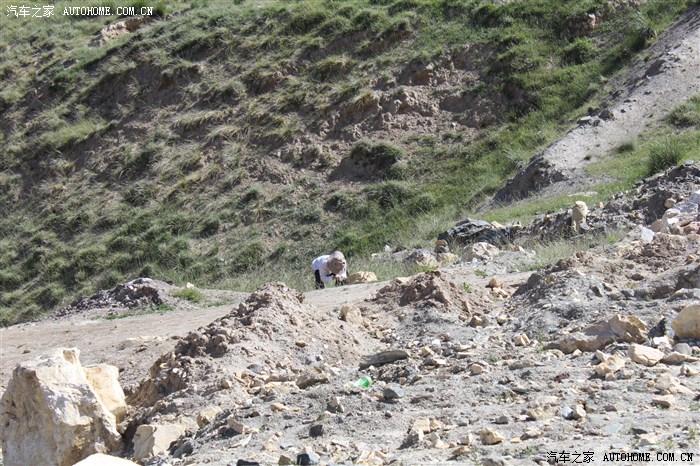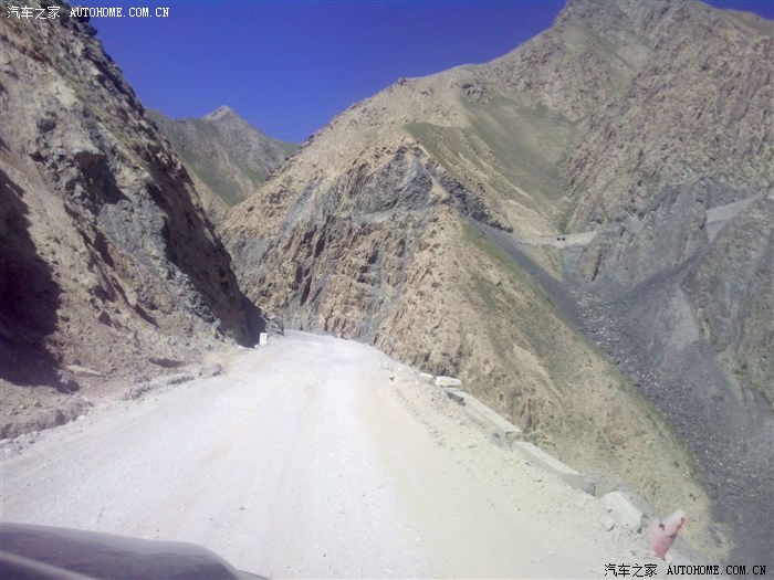 这里看上去貌似前面只能走路基了,其实不然,有条便道从左侧笔直朝上非常陡,在这里我的离合器都烧出了糊味,还熄火了好几次。后来才总结出原因在哪了。以前在城市里开,坡道起步一直没有拉手刹的习惯,离合器半抬驻车给油车就直接能上坡了。这里可是高原啊,缺氧严重,车子动力严重受损,再加上坡陡得厉害,脚刹一离开,半联动根本就停不了车,一轰油门离合器片就烧出糊味来了,赶紧松离合,车就熄火啦。不得已采用手刹驻车,半联动轰油放手刹,还是有离合片的糊味。这是在驾校里学的坡道起步技术吧!实际上在这高原上坡的情况下完全不管用。为什么呢?因为松掉离合后,发动机转速也就在1500转左右,此处又是长上坡,油门跟着踩到底发动机转速还是上不来,马上又熄火啦!