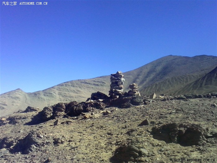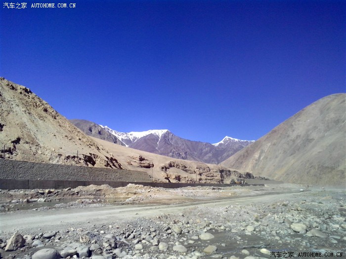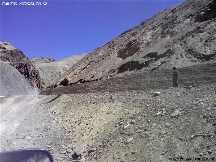 很快到了黑恰达坂的山脚下,油路变成了土路,下了便道开了一段之后发现路没了,回头到路基(前面经过时发现有碎石堆拦路,但是有越野车开过的痕迹,轿车不太可能越过),硬着头皮开上石堆,结果遇到出来后的第一次托底,前轮打滑。这时后面上来叶城过来运送物资到阿里的军车队,逐一从便道上去,这才发现第一次是走对的。赶紧倒车退出石堆,底盘咔咔咔的响,那个心痛啊~~后来才知道,这只不过是提前预演而已!