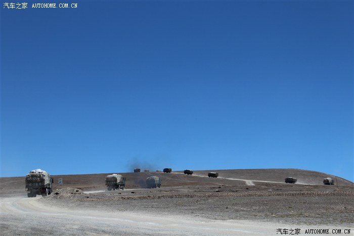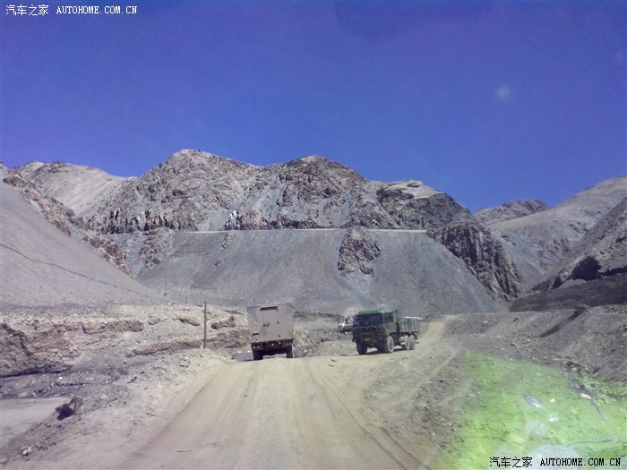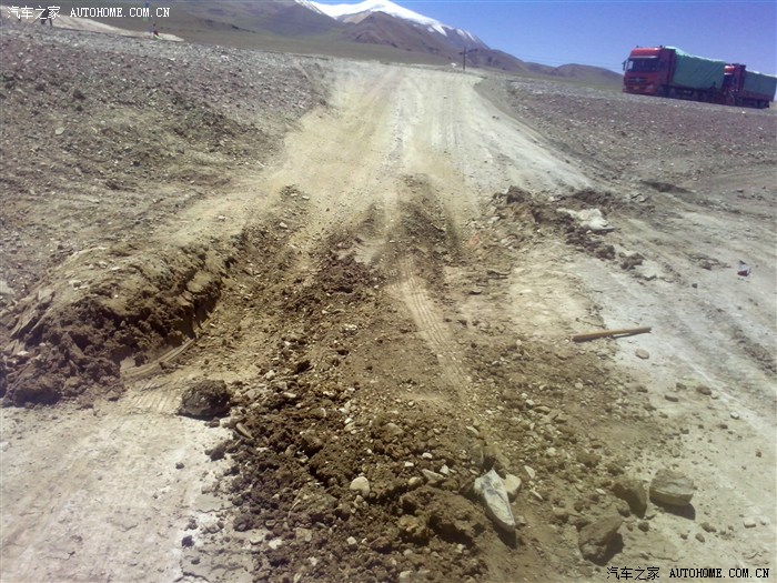 经过路边一个西藏界的牌子,好路也到头了,追上了昨天遇到的军车队