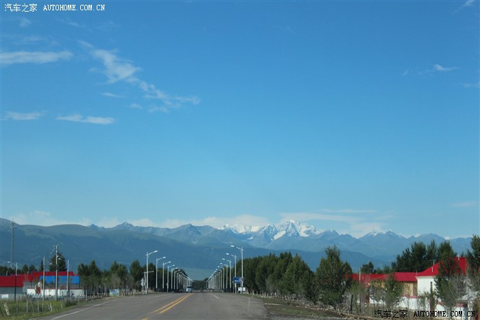 柯尔克孜族人民的红屋顶房子特别醒目,对面应该就是海拔6627的雪莲峰啦!