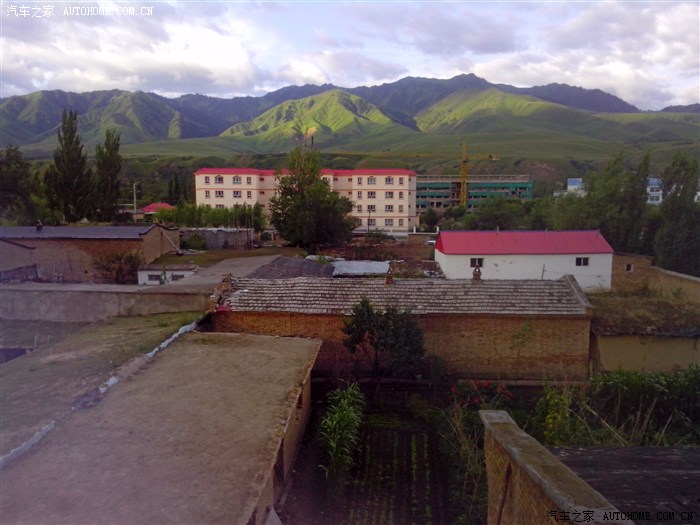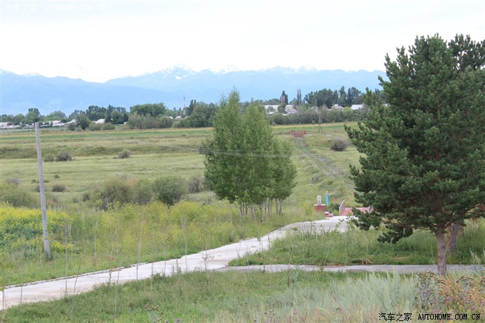 坐区间车回景区大门取车前往格登山。夏特乡路口有一块牌子指向格登山界碑,连续问了警察和当地人都没有找到这条路,只好根据导航原路返回往昭苏方向,然后在一分叉口拐进去。到76团时问路,说是景区工作人员已经下班,建议第二天一早再去。这地方只有一个团部招待所,将就一下吧。实际上,在76团那里有条油路是可以直接到夏特的,只是在夏特找不到入口而已,也有可能入口在柯尔克孜乡。