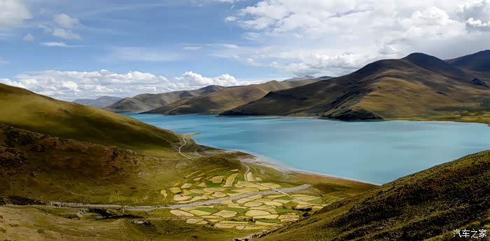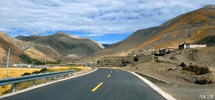 过江孜后便转入了日亚线/S204,车辆大都沿着河谷穿行,时下正值青稞收割季节,一片片金黄的麦田分布在道路两旁,就像一幅幅精心编织的长绒地毯,与村庄溪流、山峦湖泊交相陪衬,感觉就像在画中行游。