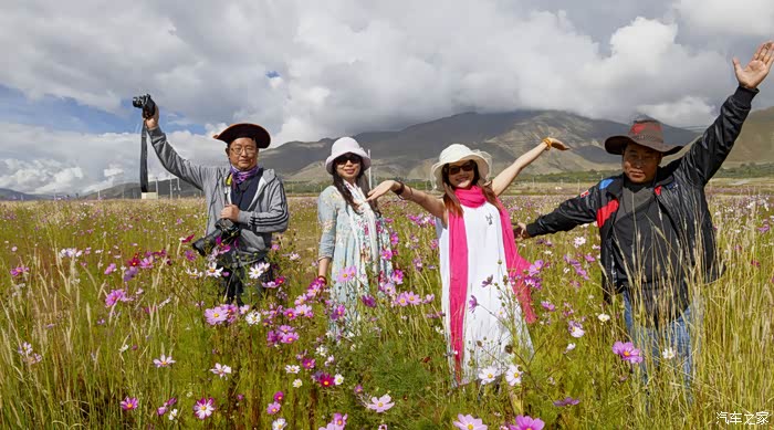 在青藏高原看格桑花并不是一件难事,可扎堆成片地从路边突然冒出不得不令人惊讶和兴奋。一朵朵五彩的花瓣如蜜蜂蝴蝶般点缀枝头,把大半个天空都辉映得晶莹剔透、艳丽斑斓。