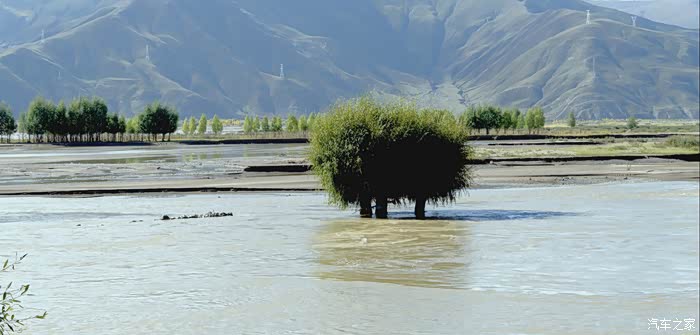 大片的森林能在水中生长是喀斯特地貌和高原地区特有的生态形式,从林芝到拉萨沿路都能看到这样的风光,只是眼前的这些树木是在孤独中演绎着生命的顽强。