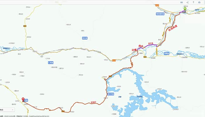 过桥后又走了一段距离,越发感觉路径不对,立马向路边老乡打听方才恍然大悟。原来我们真的走上了北线,目前已经偏离岔口达嘎近90公里,这才想到早上咨询边检警察时,对方的答复没有认真领会。原来在北线途中好像新开了一条公路直达江孜,导航正是按照这条线路默认的最佳路径,如果把终点设为羊卓雍错就OK了。