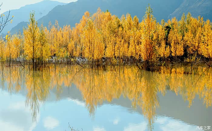 这是十多天来第一次在青藏高原见到如此规模气派的彩林风景,至少比四川内地的高山彩林提前一个月甚至更长,到达此处几乎所有自驾车都像是被沥青粘着了轮胎,一时半会动弹不得。