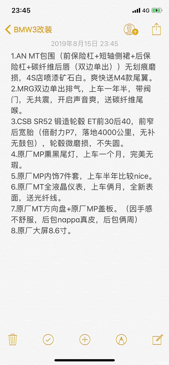 收mt矿石白前杠,另外出19款时尚轮毂,行驶7000公里,边缘有磕碰。