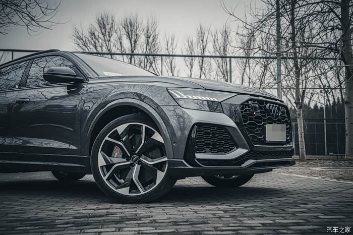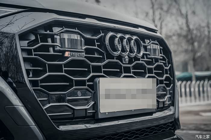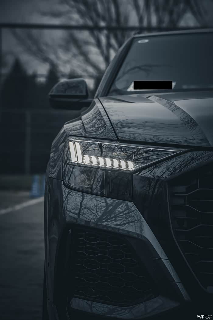 整体的外观其实和Q8没有什么太大的区别,中网换成了黑化版的蜂窝状中网看起来是更加的运动,并且增加了一个RS Q8的logo,来体现出你是一位尊贵的RS车主。奥迪的logo也做了一个黑化的处理,让整个前脸看起来都要比Q8凶狠几份。