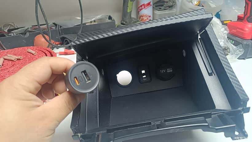 小米车载快充头用了一年多了,效果非常满意,note12手机20多分钟就可以充满,奈何快充头体积稍大,在储物盒里面算得上是庞然大物的存在,春节过完了没事干稍微改进一下。