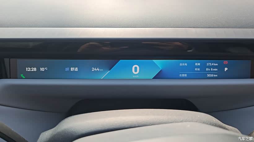 黑色车身虽说特别不耐脏,但刚洗完车的时候,漆面质感是真的亮眼。这段时间室外温度基本都在 0℃左右,我平时长短途开得都多,车内座椅加热、按摩还有空调全程没关过,一直保持着舒适的用车状态。满电后车机显示的动态续航大概 570 多公里,这次跑了 173 公里,剩余续航还有 244 公里。