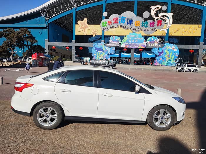 这次出行,也是开着福克斯去的,因为福克斯去年12月份刚做完保养,车况还好,跑起来放心。在海洋世界门口给福克斯拍了合影,感受新春的气氛。