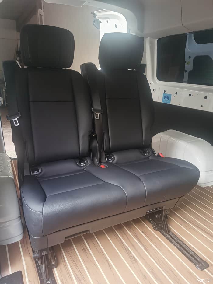 原车后排座椅坐着实在不舒服,在网上买了一套奔驰唯雅诺的座椅,把原车地板改成了木地板,感觉舒服很多
