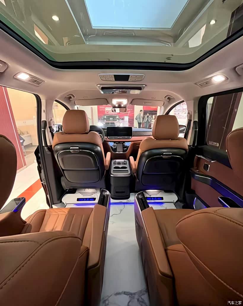 坐进车里的第一感觉是“敞亮”。2+2+3的布局,前两排空间不用多说,第三排我特意坐了坐(本人175cm),膝盖离第二排座椅还有一拳多,头顶也不顶头,比之前看的某款合资MPV舒服不少。重点夸夸第二排的航空座椅,Nappa真皮摸着手感细腻,坐上去包裹性很好,试了试按摩功能,力道不算猛但很舒服,通风和加热也试了,按钮操作直观,家里老人应该也能轻松上手。