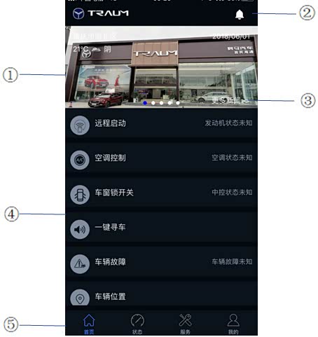 ④可远程控制车辆和查看相关状态,向下滑动页面以查看其他未显示完的内容;