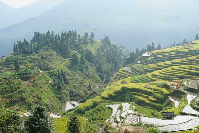 加榜梯田简要:加榜梯田位于贵州省黔东南苗族侗族自治州从江县西部月亮山腹地的加榜乡东北面,距县城80公里,是中国最好梯田之一,梯田中散落着苗乡特有的吊脚楼。