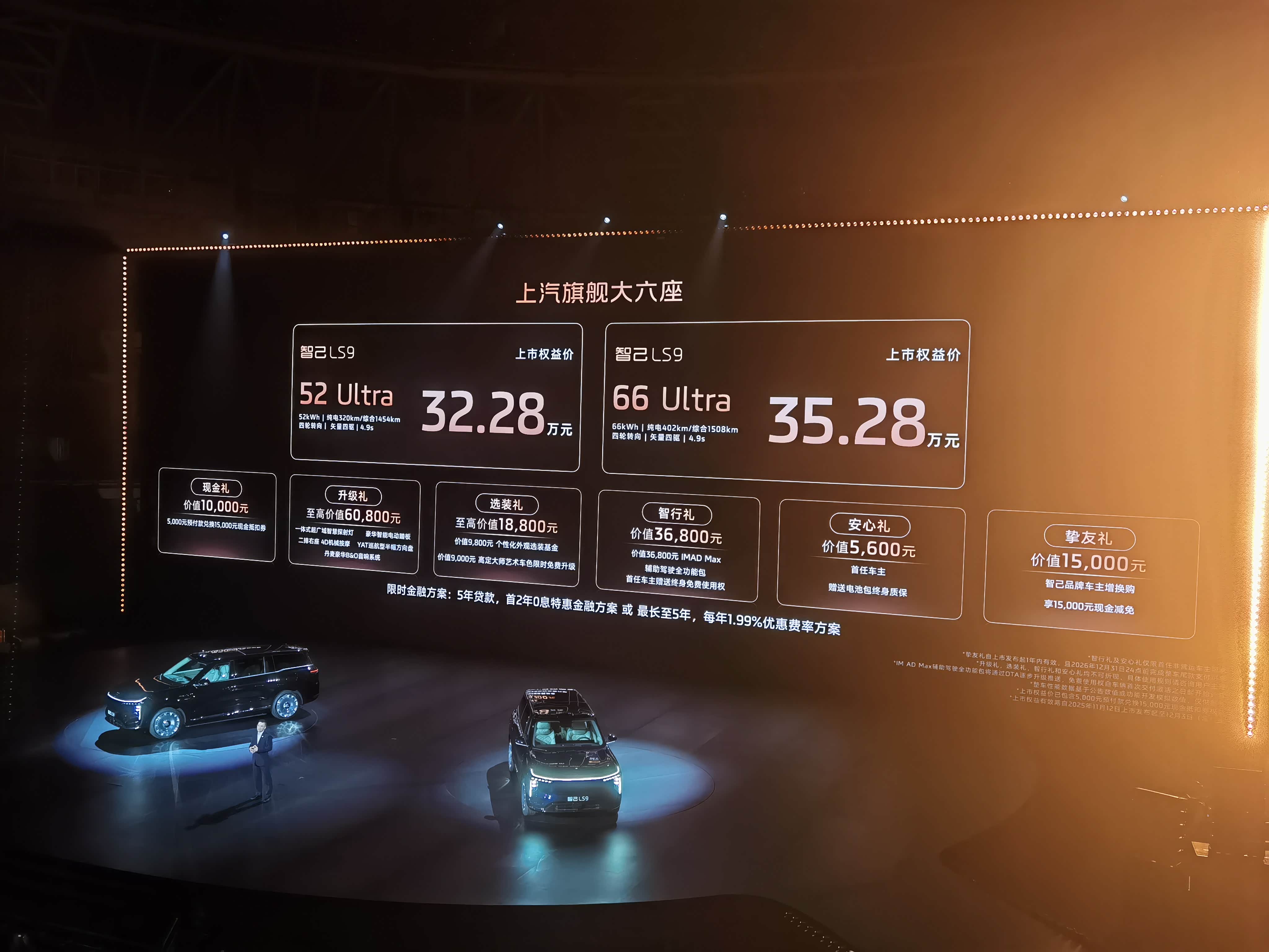 上周末刚好在逛商场的时候,看到了智己的体验中心,便走进去转了转,应该想接着机会,和大家分享一下 LS9 的配置及其购车选择。新车仅推出两款配置车型,分别为52 Ultra和66 Ultra,售价分别为32.28万和35.28万元。这种精简的产品策略确实印证了发布会提到的全系高配的话,但同时也给消费者带来了一定的烦恼:两款车型差价3万元,究竟应该如何选择?