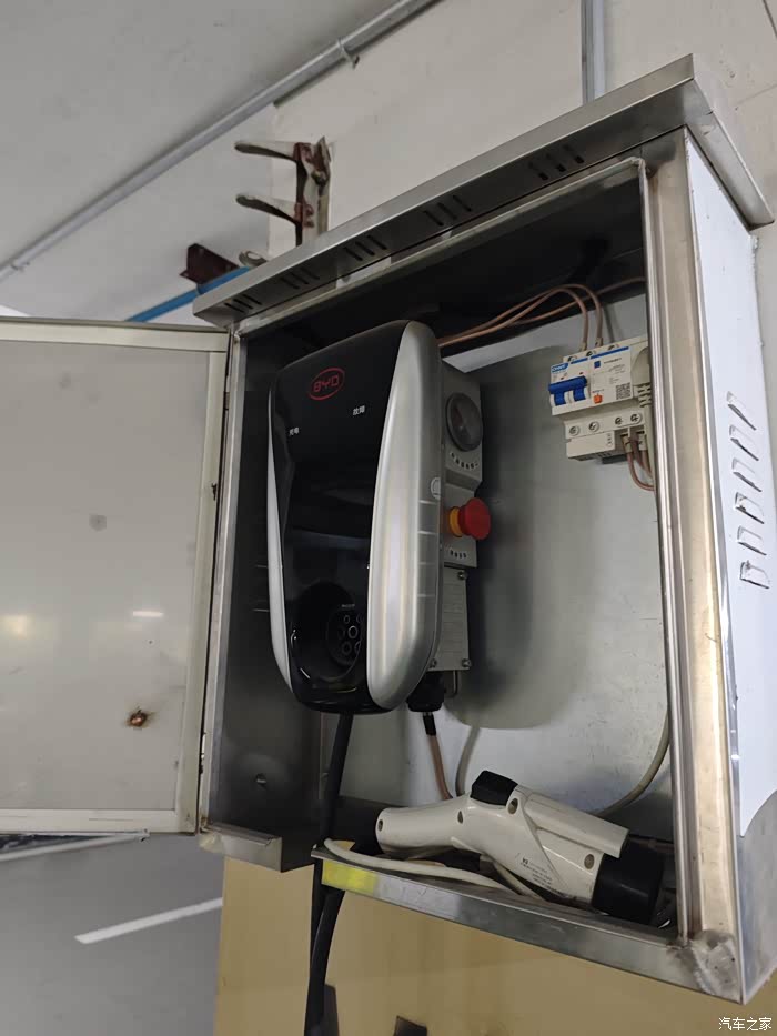 因为我前一辆车是比亚迪插混,已经安装过一个3.3kw的小功率充电桩,好在那时就是拉的3*6平方的线,所以这次安装比较简单只需要把原桩拆除,新桩按上即可。线和漏电保护开关都不用他们的,可惜也不能把线给我不然还能卖点钱,有点小亏。
