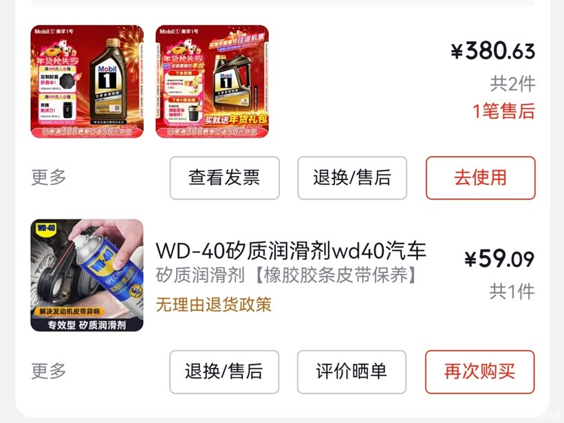 本身基础保养是续保免费送的,机油在网上买的380元,WD40 润滑剂59元