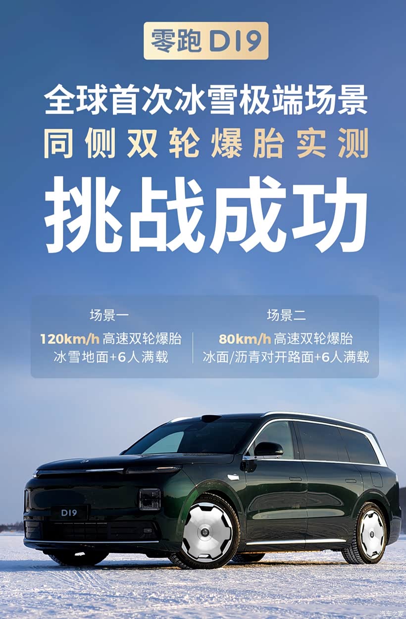 我感觉零跑D19在1月22日的全球首次冰雪极端场景冬测,直接把“不可能”变成了现实。120km/h的速度在纯冰雪路面行驶,同侧双轮爆胎,还叠加了6人满载的重量;另一组测试更苛刻,80km/h在冰面与沥青对开路面触发双轮爆胎,这种路面车轮抓地力相差近7倍,稍有不慎就会瞬间旋转失控。可D19的表现却是不仅没有出现侧翻、甩尾,甚至几乎没有明显跑偏,稳稳地保持轨迹直至平稳停下,这份硬核控车能力,我这老司机是真的佩服。