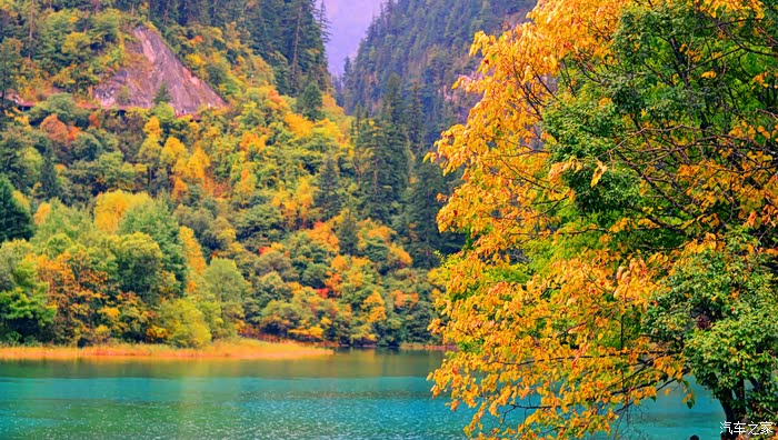 来之前完全想象不到在同一片湖水能看到这么丰富的色彩,配合岸边黄叶的衬托更显缤纷炫目,无法不让人惊叹造物之奇妙。