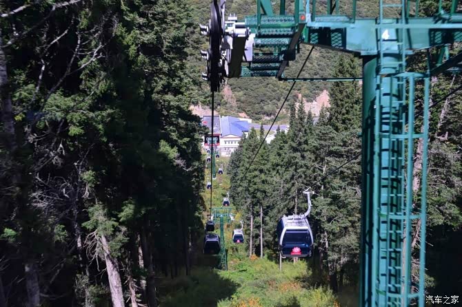 进景区,乘坐景区索道上山。10多分钟,到达半山腰的望龙坪,向右侧沿栈道步行2750米,才能走近高山彩池。估计原因是建设时考虑到尽可能保持原生态的景观,才把索道建到离景观较远的地方吧。