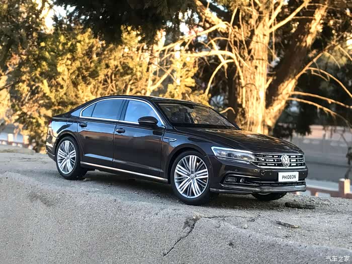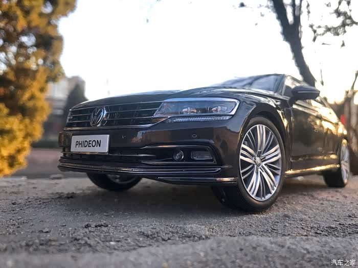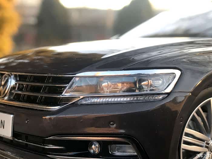 大众辉昂在车身整体设计上沿用了此前CCoupe概念车的辉昂?设计思路,大众家族式的车头设计,前格栅与LED前大灯融为一体,并且向车身侧面延伸。侧面腰线贯穿整个车身,并且延伸至尾灯上方。另外尾灯设计也极具看点,辉昂的尾灯采用双层设计,下层尾灯向内收缩,形成错落感。好了不多说,欣赏车模~