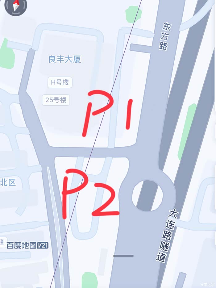 车尾右后方就是P1停车场的入口,左后方就是P2停车场的入口。这个10块钱一小时算是比较便宜的,附近我看也有不少违停在旁边小巷子或者路边的车辆,我看也没有贴条,当然我是不太愿意赌一把的,人在车里的时候我就停在路边的,当我要离开车辆的时候我就选择了把车停进停车场里面,