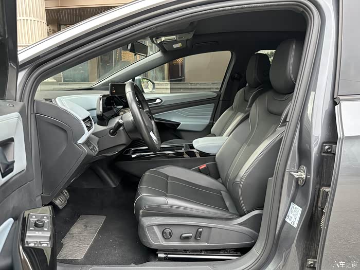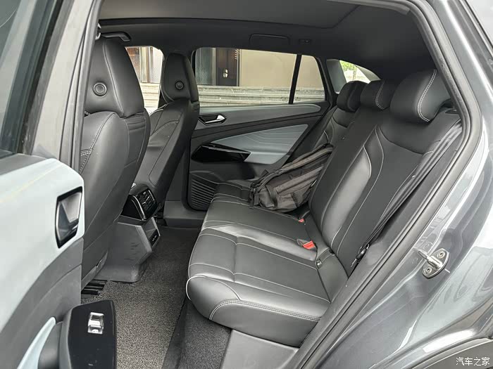 德系车的座椅是我比较喜欢的,座椅相对日系车更硬一些。ID.4X的座椅的包裹性和支撑性都非常不错,坐上去感觉很舒服。唯一有点遗憾的是这台车是低配的,座椅没有通风,甚至皮料也没有打孔,夏天坐久了会有点不太舒服。如果座椅没有通风功能,我更倾向植物材质的座椅,透气性会好很多。