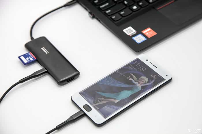 逮住刚到手的转换器开始噼里啪啦一顿猛拍,当把Type C转换器的数据线和电脑一对接,