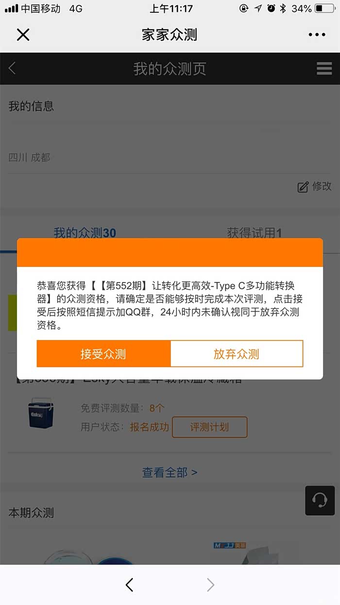 皇天不负有心人啊,在我完美错过家家众测成都站活动之后,