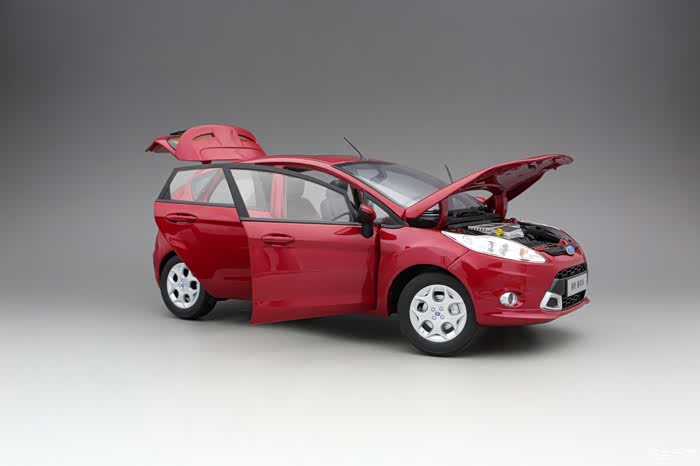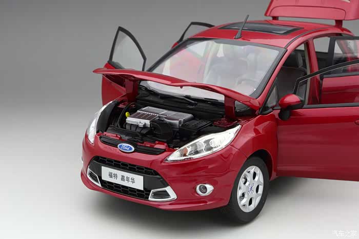 经常在拍模型的时候会突然发现一些曾经没有留意过的美好,就像今天和大家一起分享的模型长安福特嘉年华2011款一样,路上遇到也就是遇到,不会太多的关注,模型收到后,也是简单粗暴的看眼没有大瑕疵,就堆起来,也从不细细观察。也就是静静的一个人,对他拍照的时候,不经意间的角度变换,会突然发现他的美,被他吸引。嘉年华的后侧45度,好漂亮。模型厂商是国产原厂,比例为1 18,模型总体来说做工还是不错的,漆面保持也算不错,原厂模型的几个基本特征,在他身上也全部具备,标准六开,引擎盖、后备箱、四门,后视镜可折叠,内饰的刻画、分色也做的不错。原厂模型最让我感觉舒服的地方就是重量,拿在手里很压手,这种合金模型的感觉非常好。国产原厂模型经过这些年的发展,做工也是越来越好,但价格还是依旧处于低位,这个是一件可喜的事情。