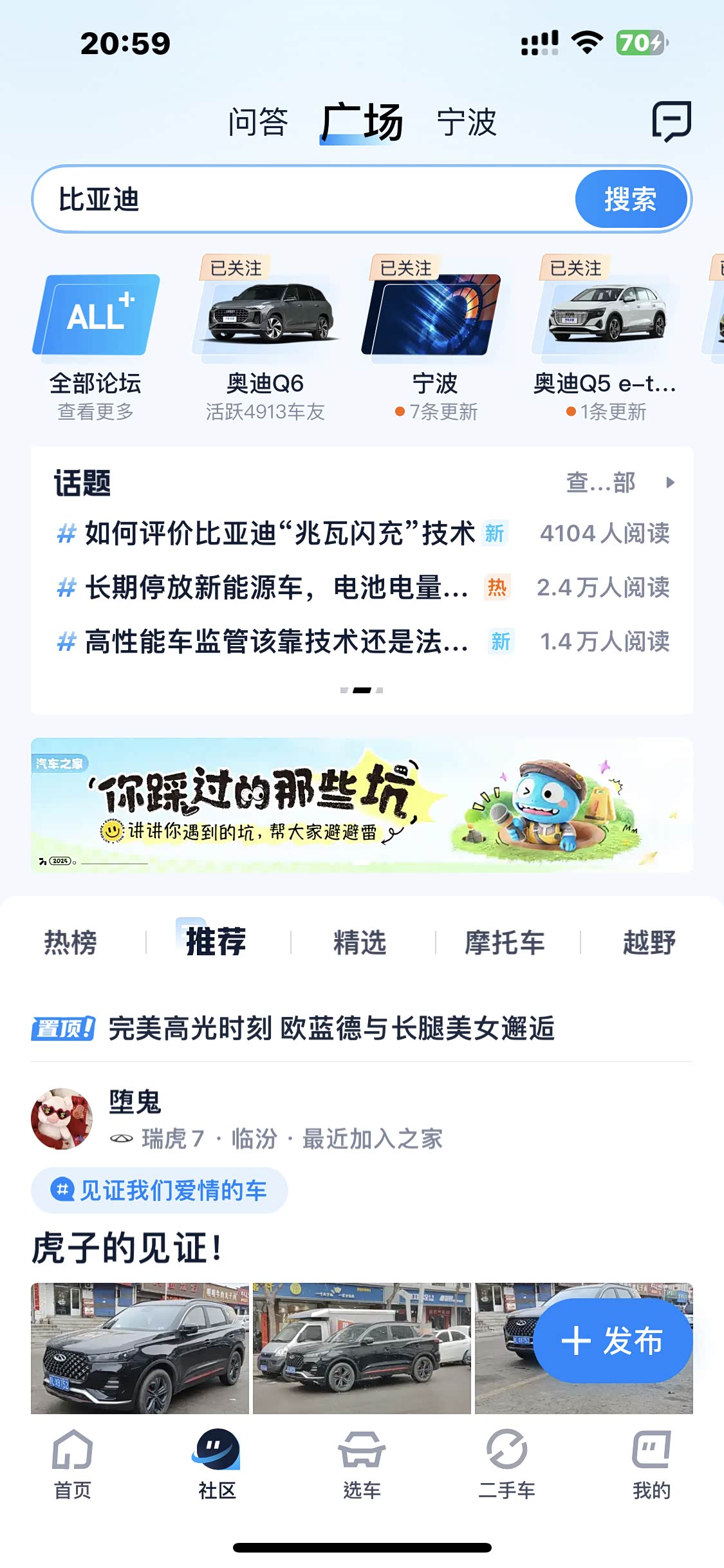 制作好所需要发的汽车视频后,在社区界面有个发布,点进去之后,下面有个视频的选项,点击就可以了