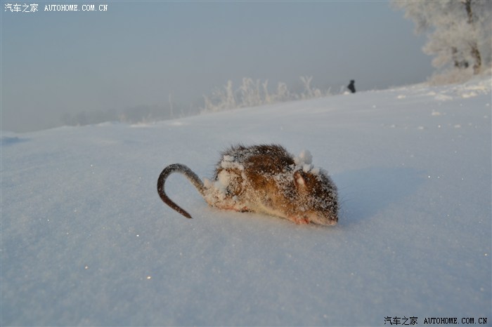 江边冰雪晨雾中的一只老鼠,成了雕塑品。